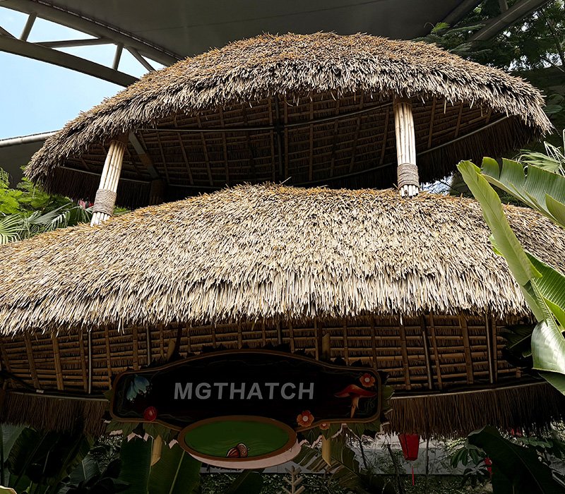MGTHATCH® specializes in the production and sales of tropical-themed synthetic building materials. Our core products include synthetic thatch roofing, synthetic bamboo matting, synthetic bamboo poles, and synthetic wooden shingles, primarily made from eco-friendly, non-toxic HDPE plastic and nylon. These products are widely used for roof renovations, tropical-themed hotel constructions, poolside TIKI huts, resorts, and more.